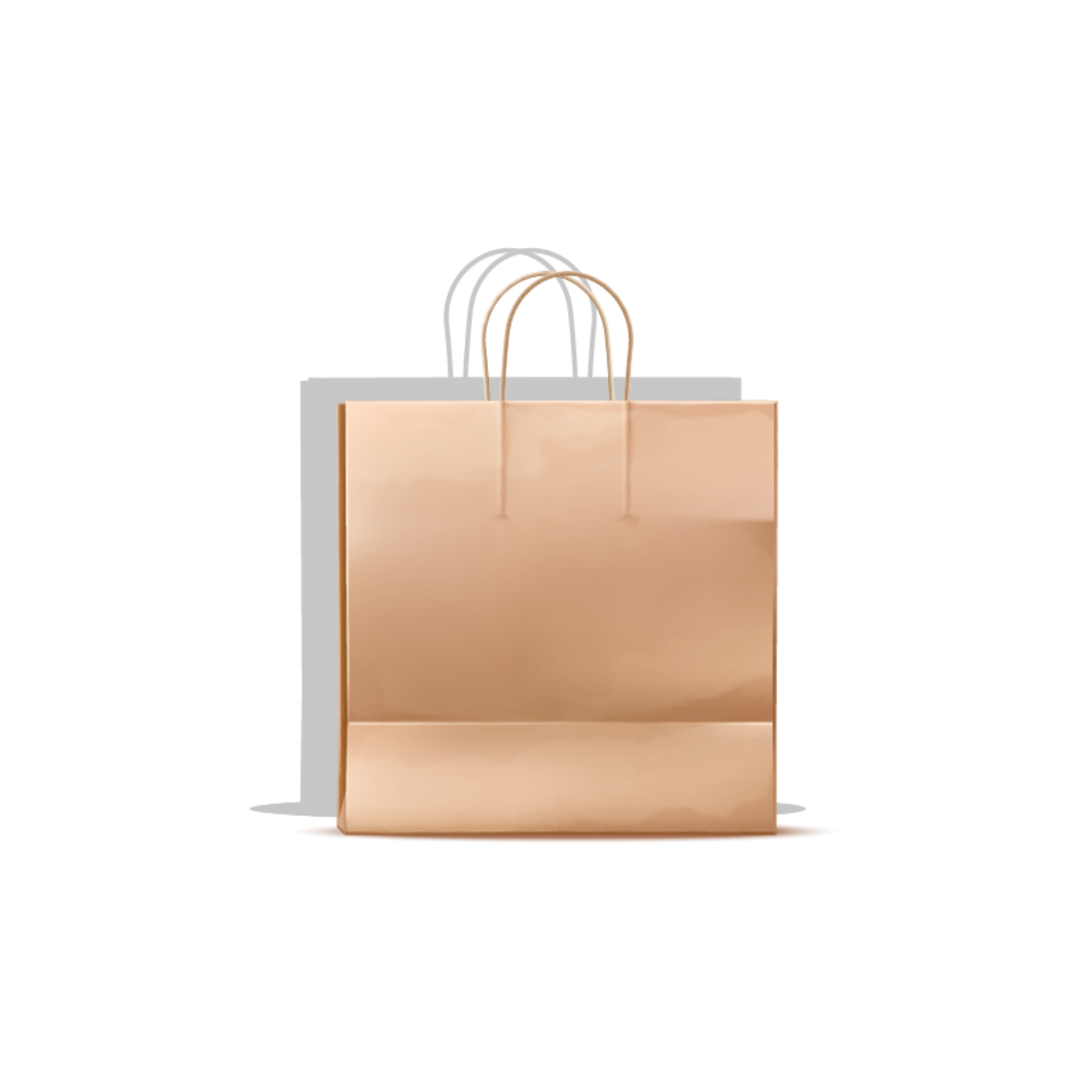شنطة ورقي كرافت بني 30 × 30 × 14 مطبوعة بيد مبرومة(100الي 120جم)